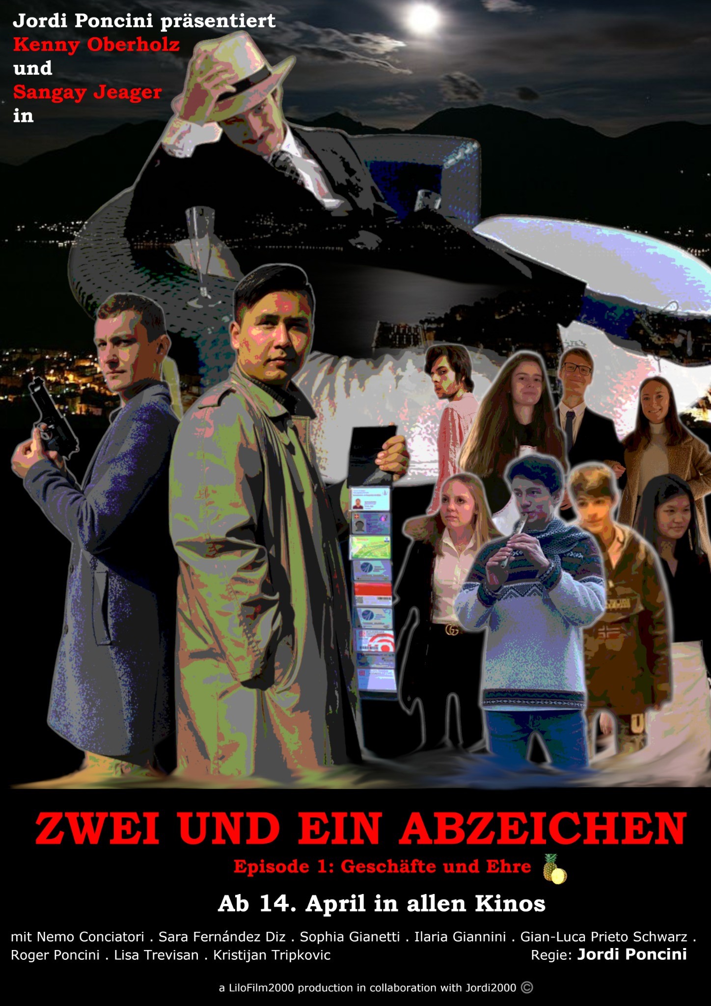 Giudizio della critica. Il regista Jordi Poncini, con impegno encomiabile e grazie al valido apporto di alcuni suoi compagni di classe 4F del Liceo cantonale di Locarno - in primis gli attori principali Kenny Oberholz e Sangay Jaeger - ha realizzato un film poliziesco della durata di tre quarti d’ora dal titolo Zwei und ein Abzeichen. Oltre a scrivere un copione di oltre venti pagine e soprattutto a recitare in tedesco, il gruppo di allievi è riuscito a costruire una trama avvincente e raffinata. È altresì notevole la cura dei dettagli, in particolare per quanto concerne le inquadrature e la scenografia, nonché la scelta della colonna sonora.